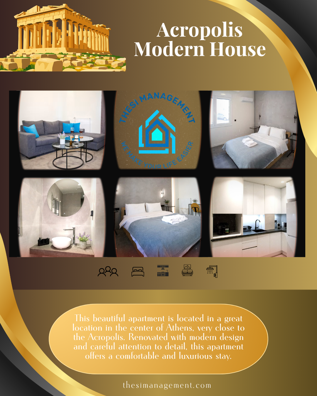 This beautiful apartment is located in a great location in the center of Athens, very close to the Acropolis. Renovated with modern design and careful attention to detail, this apartment offers a comfortable and luxurious stay.