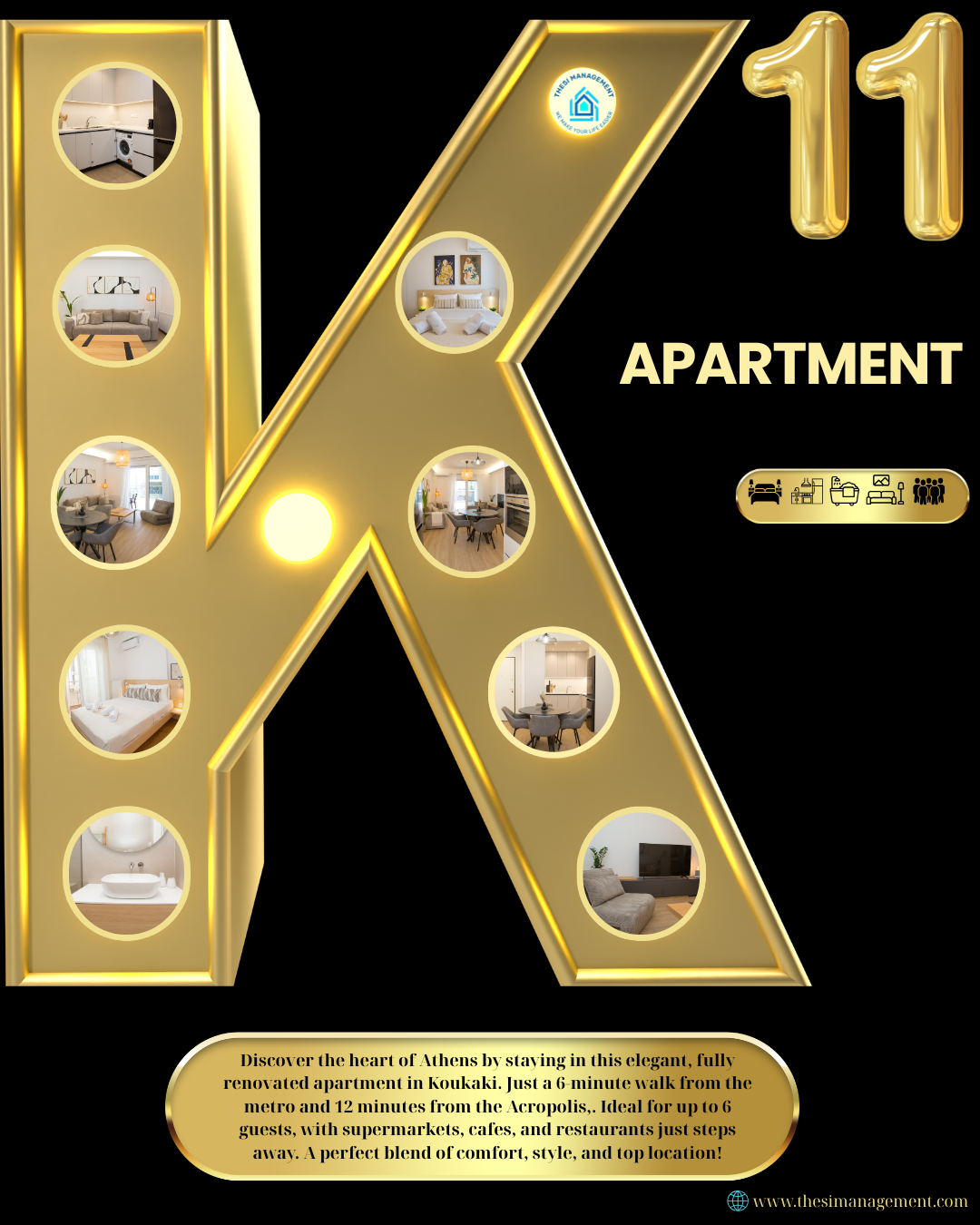 Discover the heart of Athens by staying in this elegant, fully renovated apartment in Koukaki. Just a 6-minute walk from the metro and 12 minutes from the Acropolis, it features a luxurious design, spacious layout, modern kitchen, washing machine, and a large balcony. Ideal for up to 6 guests, with supermarkets, cafes, and restaurants just steps away. A perfect blend of comfort, style, and top location!