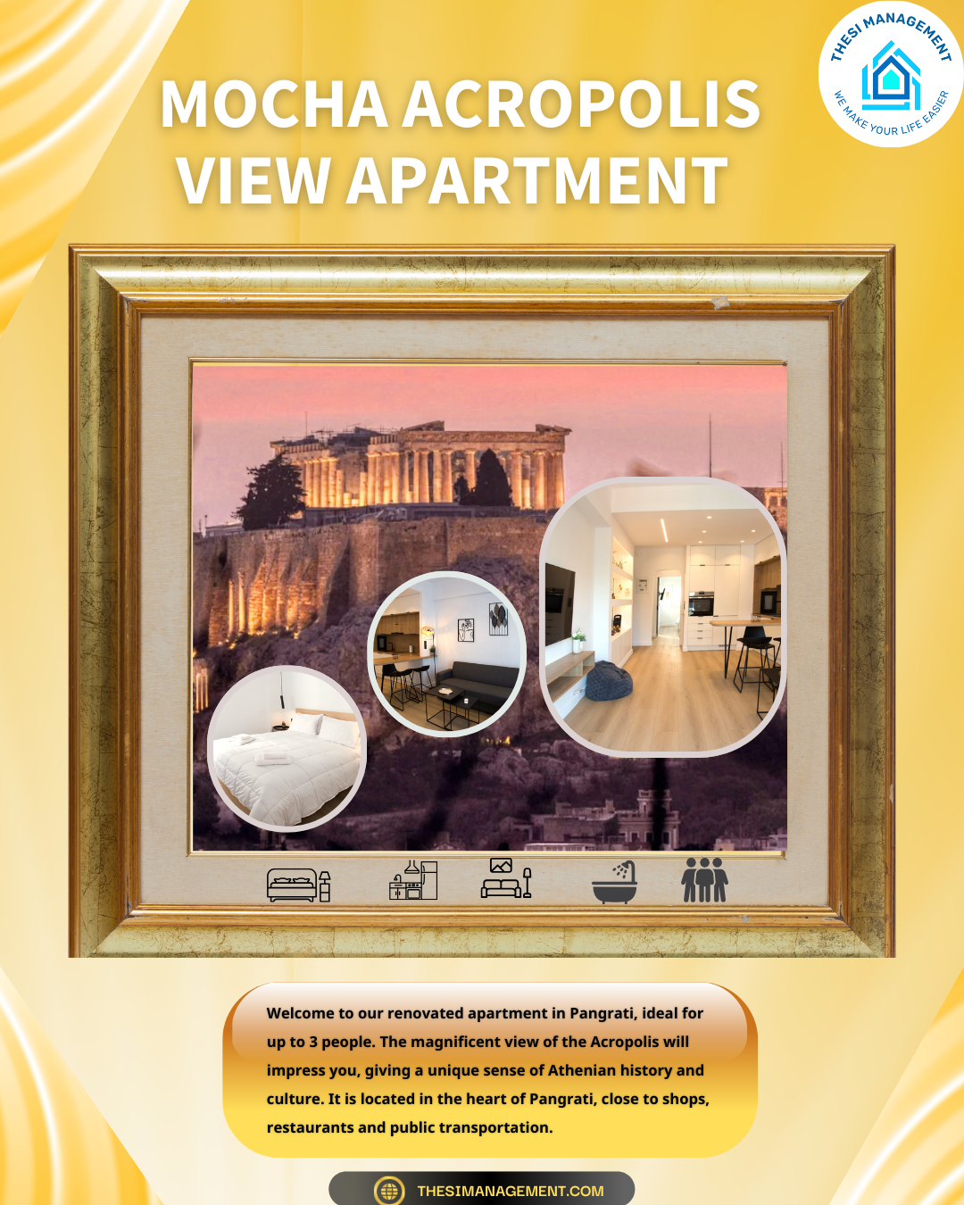 Welcome to our renovated apartment in Pagrati, ideal for up to 3 people. The apartment has a comfortable double bed and a sofa-half double bed, offering comfort and space for everyone. The magnificent view of the Acropolis will impress you, giving a unique sense of Athenian history and culture. Located in the heart of Pagrati, close to shops, restaurants and public transport, offering easy access to all the sights of Athens.