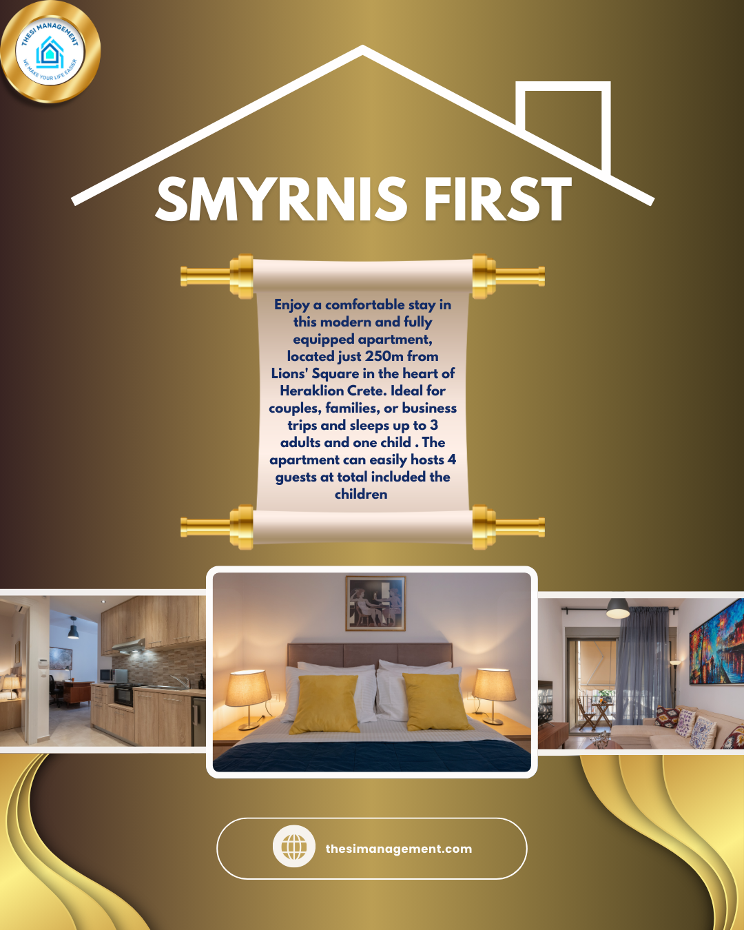 Enjoy a comfortable stay in this modern and fully equipped apartment, located just 250m from Lions' Square in the heart of Heraklion Crete. Ideal for couples, families, or business trips and sleeps up to 3 adults and one child . The apartment can easily hosts 4 guests at total included the children